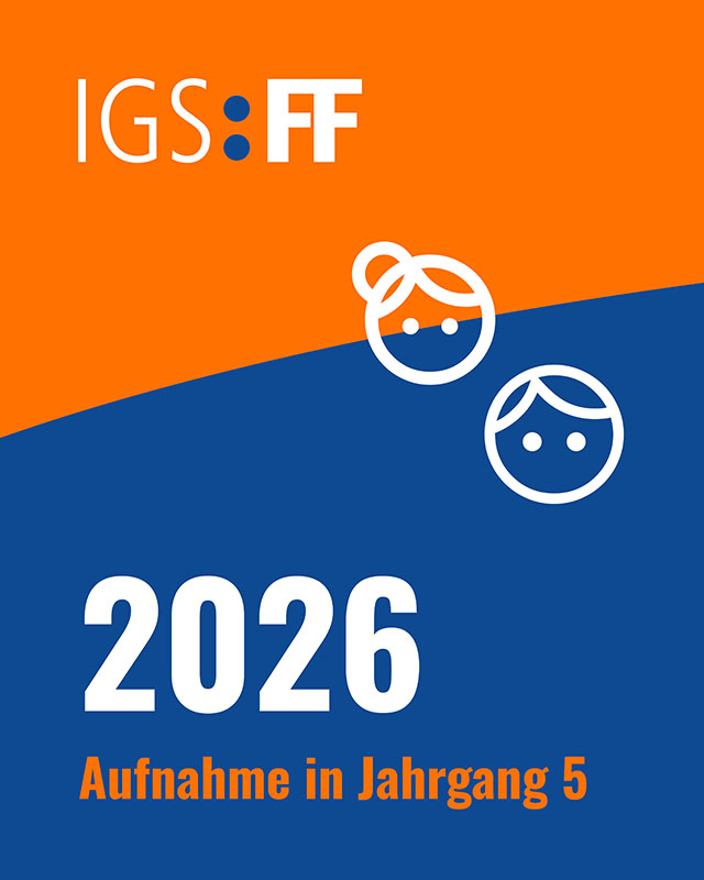 nach diesem Schuljahr wechselt Ihr Kind auf eine weiterführende Schule. Die Anmeldezeiten hierfür sind in Braunschweig zentral geregelt. Sie haben die Möglichkeit, Ihr Kind am 4. und 5. Mai 2026 für den 5. Jahrgang des Schuljahres 2026/2027 an der IGS:FF anzumelden.