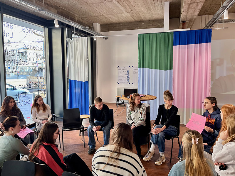 IGS:FF-Schüler:innen begrüßen die Teilnehmer:innen des „Schultheater der Länder“ farbenfroh, [...]