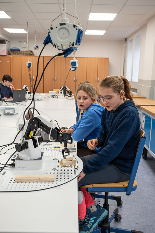 Danach führte ein kurzer Rundgang durch die Schule. Herr Henkel gewährte Einblicke in den AWT-Unterricht. Die kleine Gruppengröße war Anlass zu thematisieren, dass Schulen das Teilen von Lerngruppen im AWT-Unterricht auf Grundlage der Arbeitssicherheit vornehmen müssen, dafür aber keine personellen Ressourcen erhalten. Anschließend ergab sich die Gelegenheit, eine Fortbildung der Gesamtschulakademie für Lehrkräfte zum Thema „Lernförderliche Rückmeldungen“ zu besuchen. Diese Akademie, von den Gesamtschulleiter:innen der Region mit Unterstützung der GGG gegründet, qualifiziert gezielt junge Lehrer:innen an Gesamtschulen.