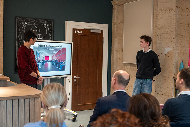 Am 24. Februar 2026 empfing die IGS Franzsches Feld besonderen Besuch: Der Staatssekretär des Niedersächsischen Kultusministeriums, Herr Ertner, kam mit seinem Referenten, Herrn Egerer, zu uns. Nach einer kurzen Begrüßung präsentierte das SV-Team, bestehend aus Thede, Jamil, Magnus, Adrian und Noel, seine Arbeit. Die Schüler zeigten, wie sie im SV-Team, in Sitzungen und im Klassenrat arbeiten, und dass diese Arbeitsweisen die Grundlage für gelebte Demokratie an unserer Schule sind. Im anschließenden Gespräch stellten die Mitglieder des SV-Teams eigene Fragen. Themen waren die Stärkung der SV-Arbeit im Stadtschülerrat durch geschultes Personal, Nachteilsausgleiche in der Sekundarstufe II und systematisches Schülerfeedback an Lehrkräfte.