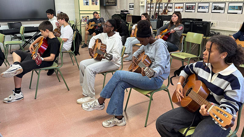 Wir konnten am Unterricht in verschiedenen Fächern teilnehmen, darunter Spanisch, Musik, Deutsch und Englisch. Auffällig war vor allem das vielfältige musikalisch-künstlerische Angebot der Schule, mit Fächern wie „Arts Escèniques“ (Szenische Künste/Musical), „Cor i Tècnica Vocal“ (Chor) und „Anàlisi Musical“ (Musiktheorie). Die Schülerinnen und Schüler haben hier viele Möglichkeiten, sich auszuprobieren – sei es auf der Bühne, beim Singen oder im Umgang mit musikalischen Grundlagen.