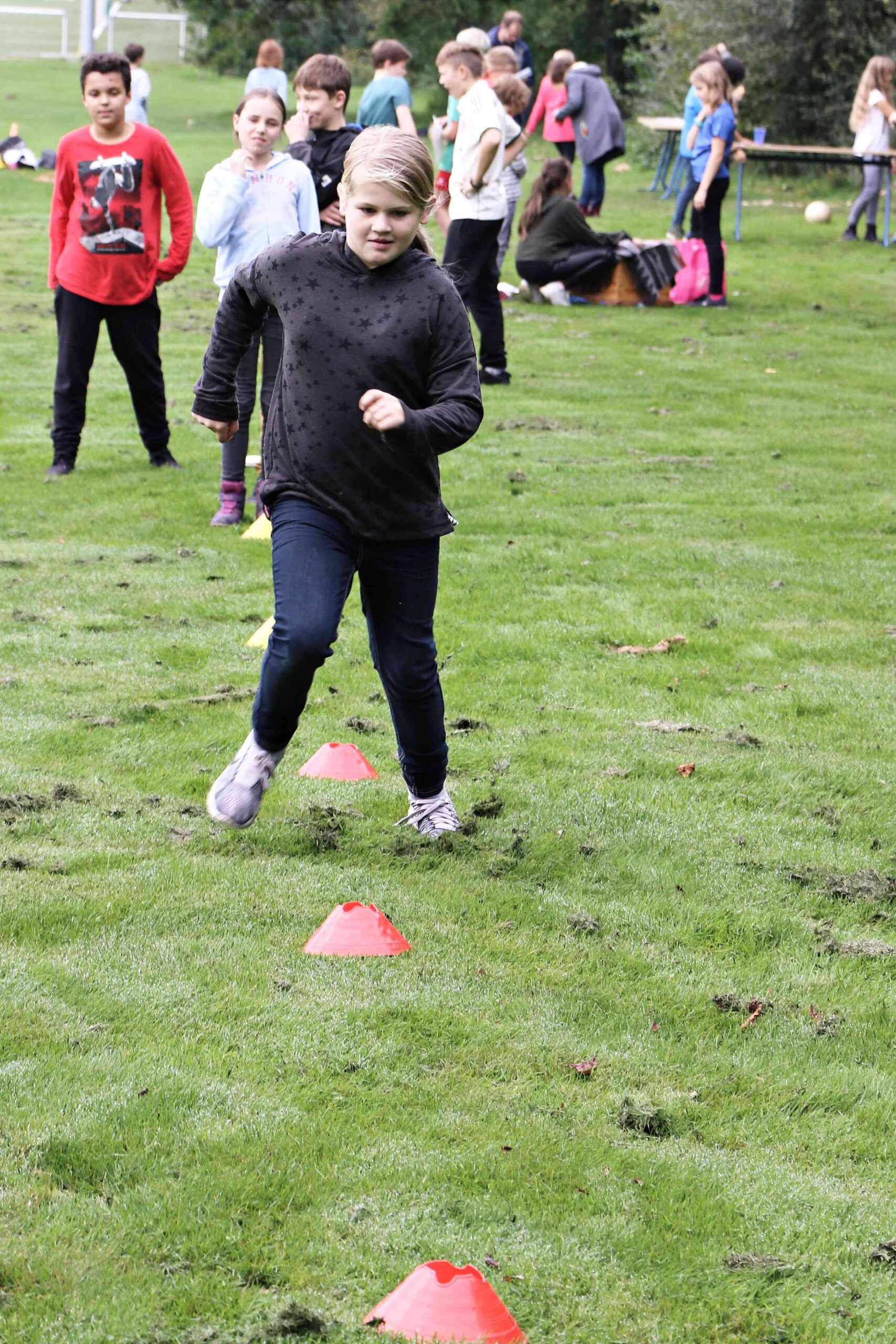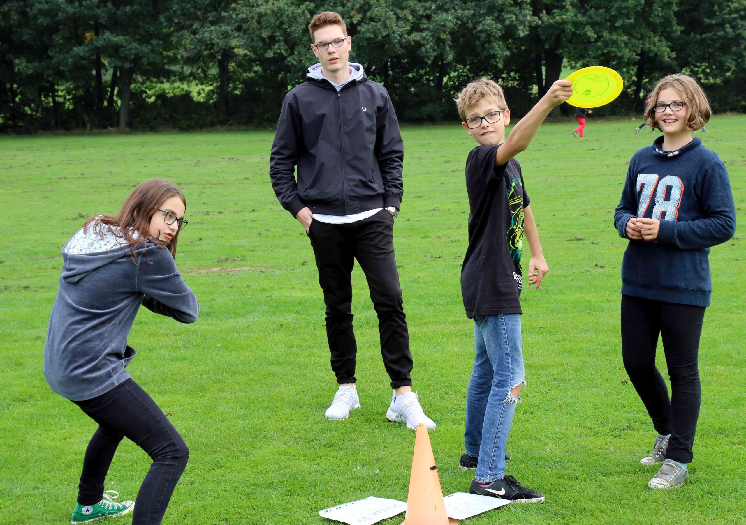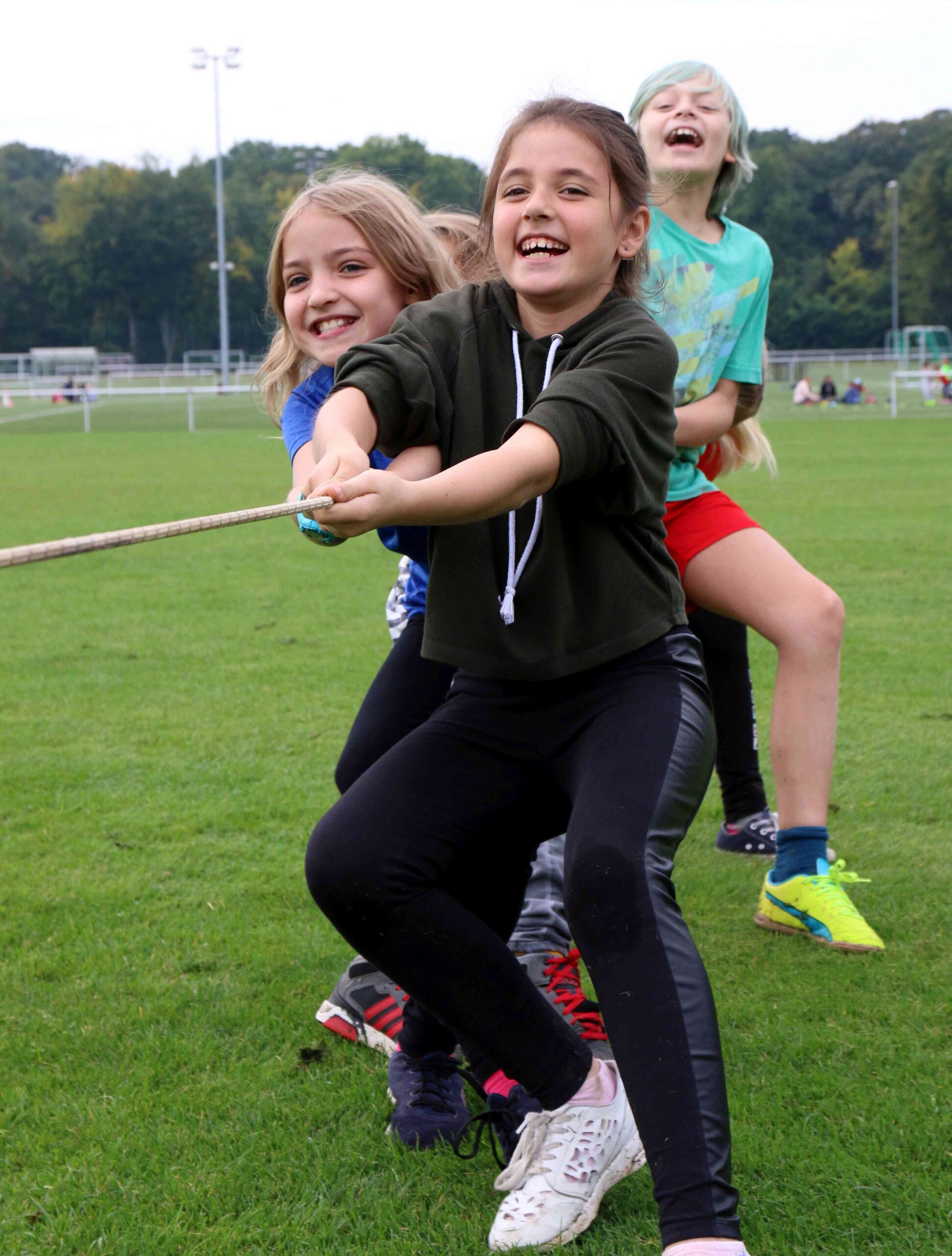Kurz vor den Herbstferien hat der 5. Jahrgang der IGS:FF auch in diesem Jahr die „Olympischen Teamspiele“ durchgeführt. Gemeinsam mit den Patenschüler/innen der vier 5. Klassen haben die rund 100 Schüler/innen des 5. Jahrgangs an rund 20 Stationen ihre sportlichen Fähigkeiten ausprobiert und ihren Teamgeist eindrucksvoll unter Beweis gestellt. An diversen Stationen, wie zum Beispiel dem Tauziehen, dem Torwinkelschießen oder dem Texten von Teamsprüchen zeigten die Schüler/innen in ihren Tischgruppen ein großes gemeinsames Engagement bei ihren Aufgaben. Für einen reibungslosen und gut durchdachten Ablauf der Veranstaltung gilt ein großes Lob vor allen den Kollegen Andre Blank und Björn Birla aus dem Sportbereich.