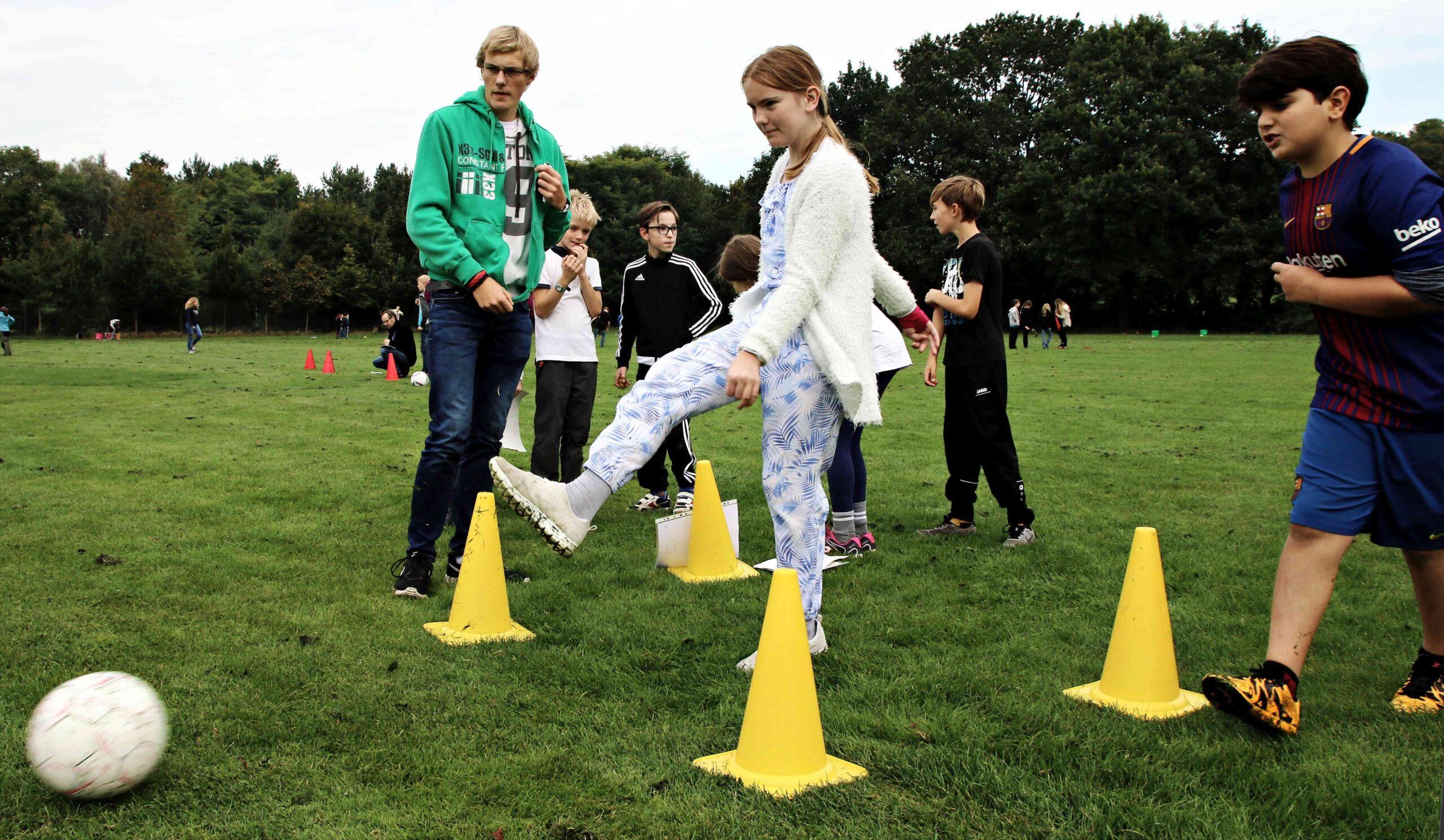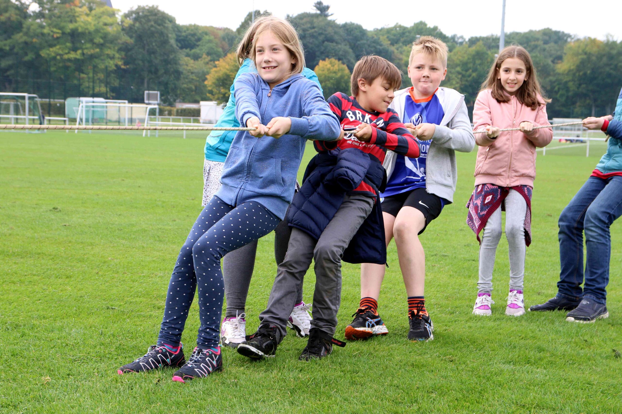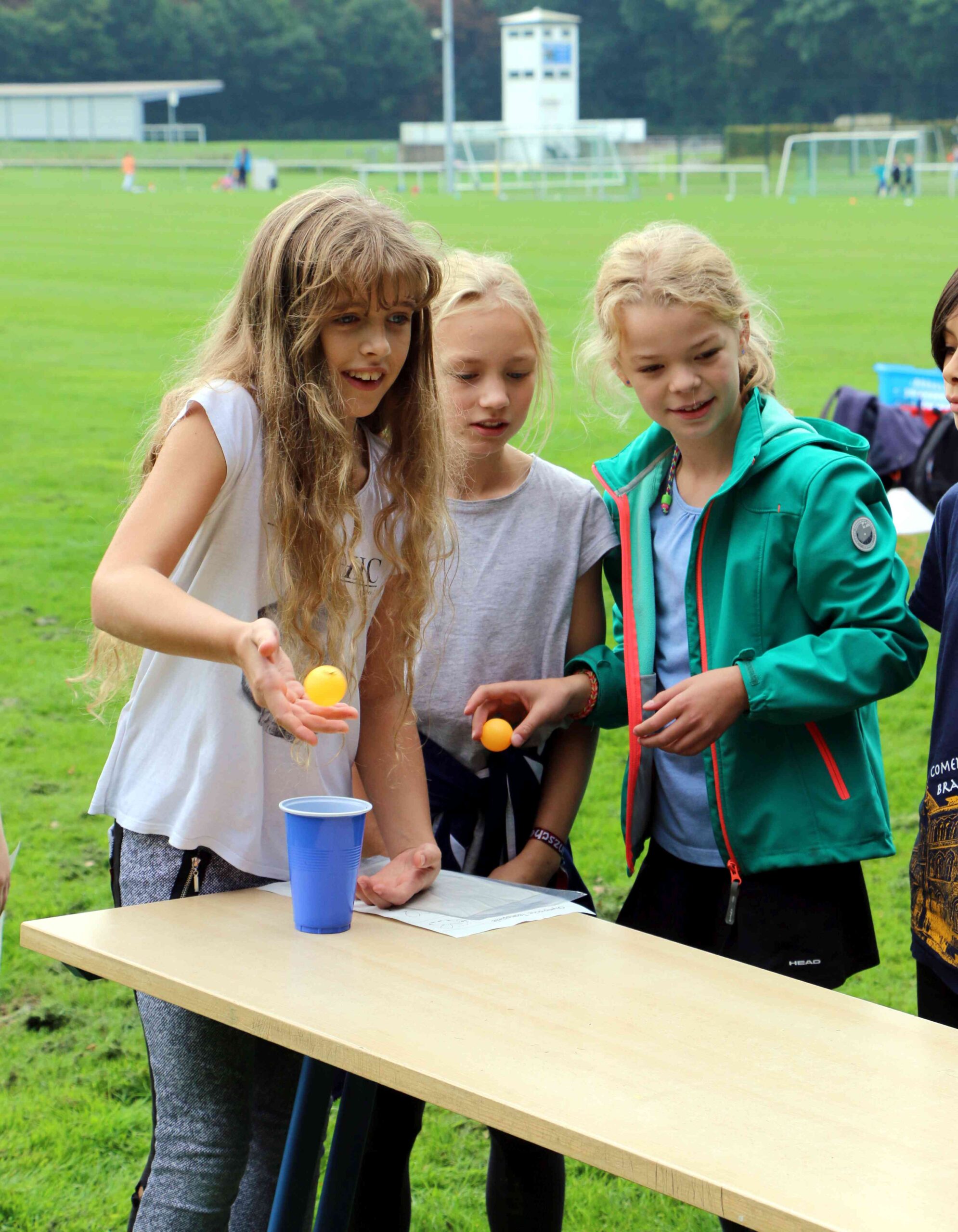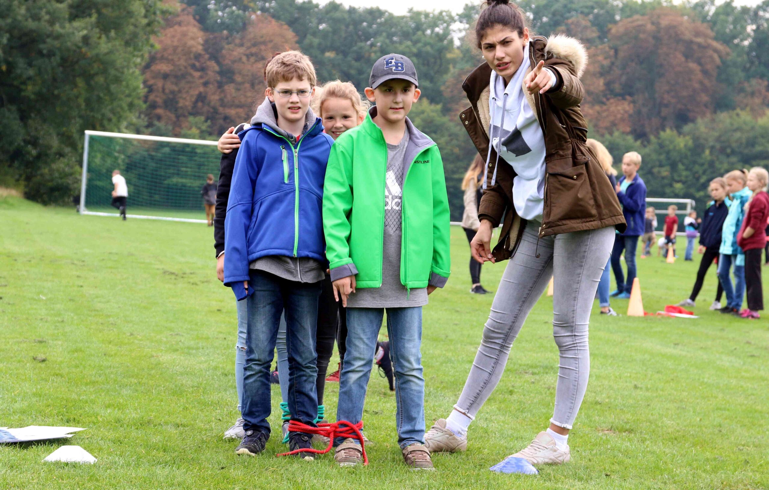 Kurz vor den Herbstferien hat der 5. Jahrgang der IGS:FF auch in diesem Jahr die „Olympischen Teamspiele“ durchgeführt. Gemeinsam mit den Patenschüler/innen der vier 5. Klassen haben die rund 100 Schüler/innen des 5. Jahrgangs an rund 20 Stationen ihre sportlichen Fähigkeiten ausprobiert und ihren Teamgeist eindrucksvoll unter Beweis gestellt. An diversen Stationen, wie zum Beispiel dem Tauziehen, dem Torwinkelschießen oder dem Texten von Teamsprüchen zeigten die Schüler/innen in ihren Tischgruppen ein großes gemeinsames Engagement bei ihren Aufgaben. Für einen reibungslosen und gut durchdachten Ablauf der Veranstaltung gilt ein großes Lob vor allen den Kollegen Andre Blank und Björn Birla aus dem Sportbereich.