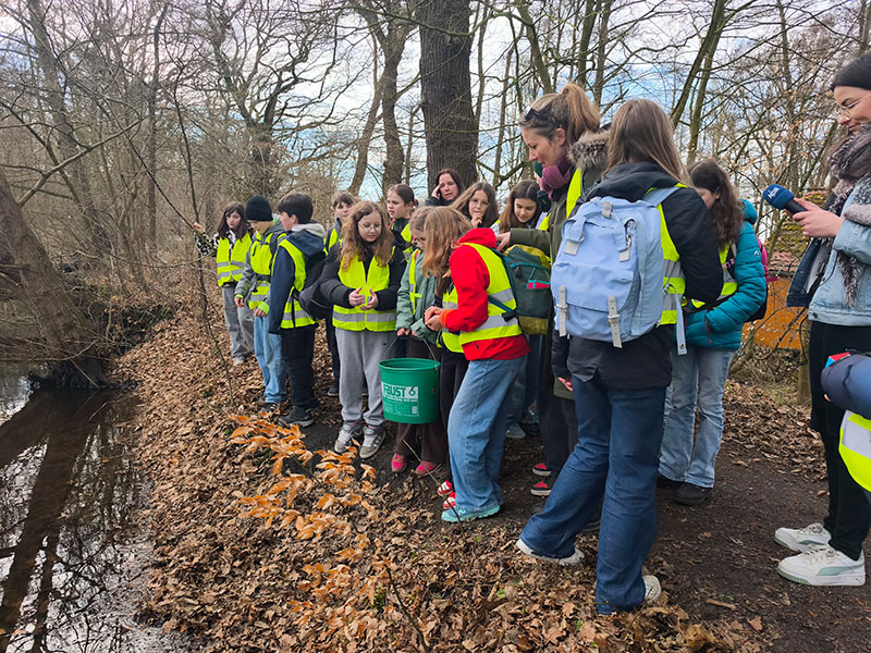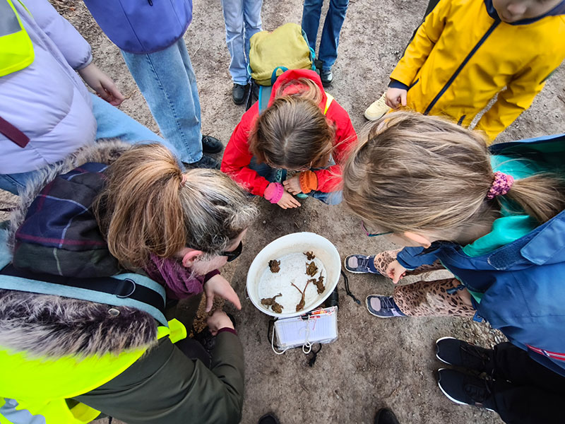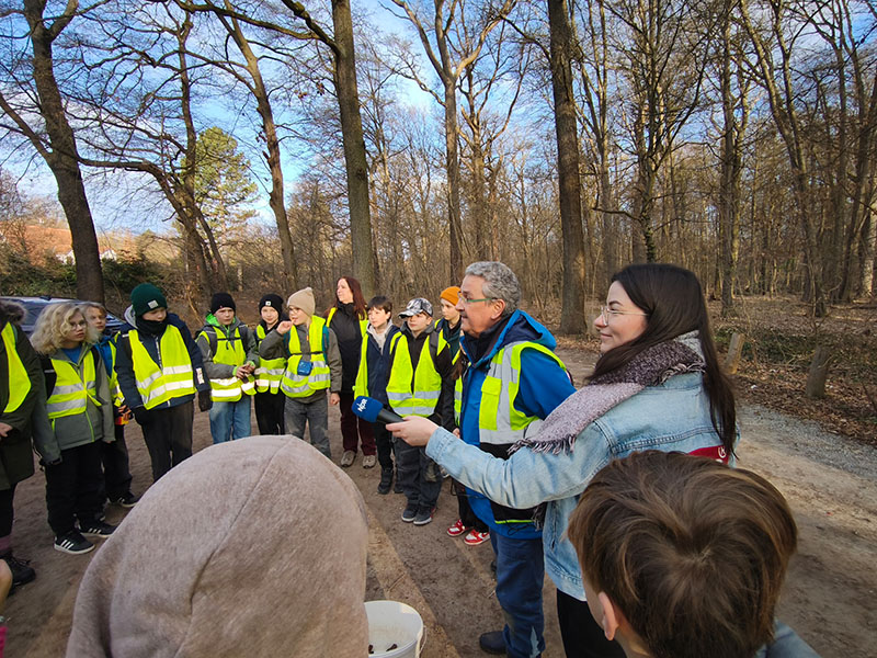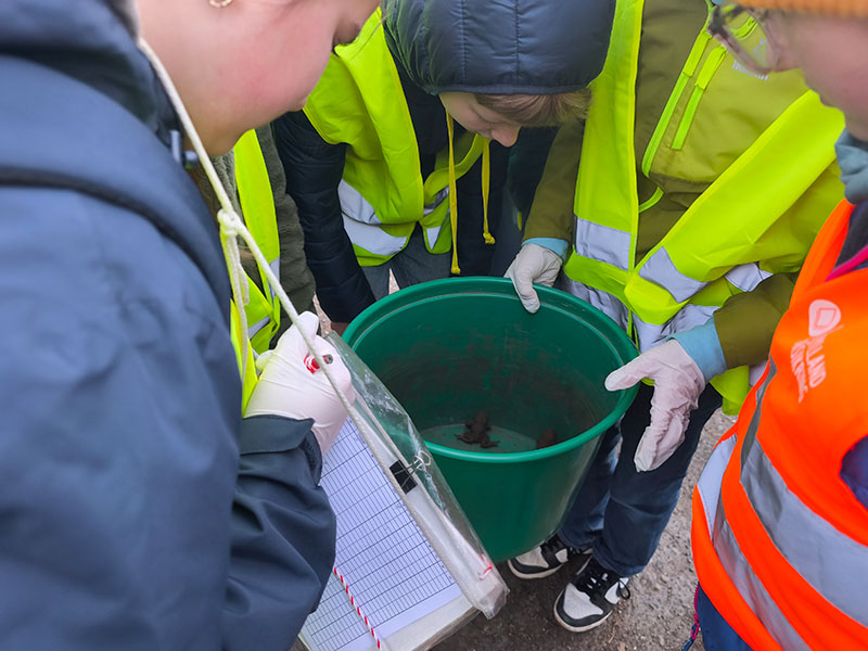 Bei der 5.1 war sogar der Radiosender NDR dabei! Das Wetter war an diesem Tag perfekt, denn die Tiere sind nur bei feuchtem Wetter und passenden Temperaturen unterwegs. Bevor es losgehen konnte, bekamen wir noch ein paar wichtige Informationen: Uns wurden verschiedene Arten gezeigt (u.a. Kröten, Molche) und es wurde erklärt, wie wir bei den Kröten die Männchen von den Weibchen unterscheiden können. Die Männchen sind nämlich viel kleiner und haben schwärzliche Schwielen an den Daumen. Uns wurde auch gezeigt, wie wir die kleinen warzigen Tierchen anfassen und hochnehmen sollten, ohne sie zu verletzen.